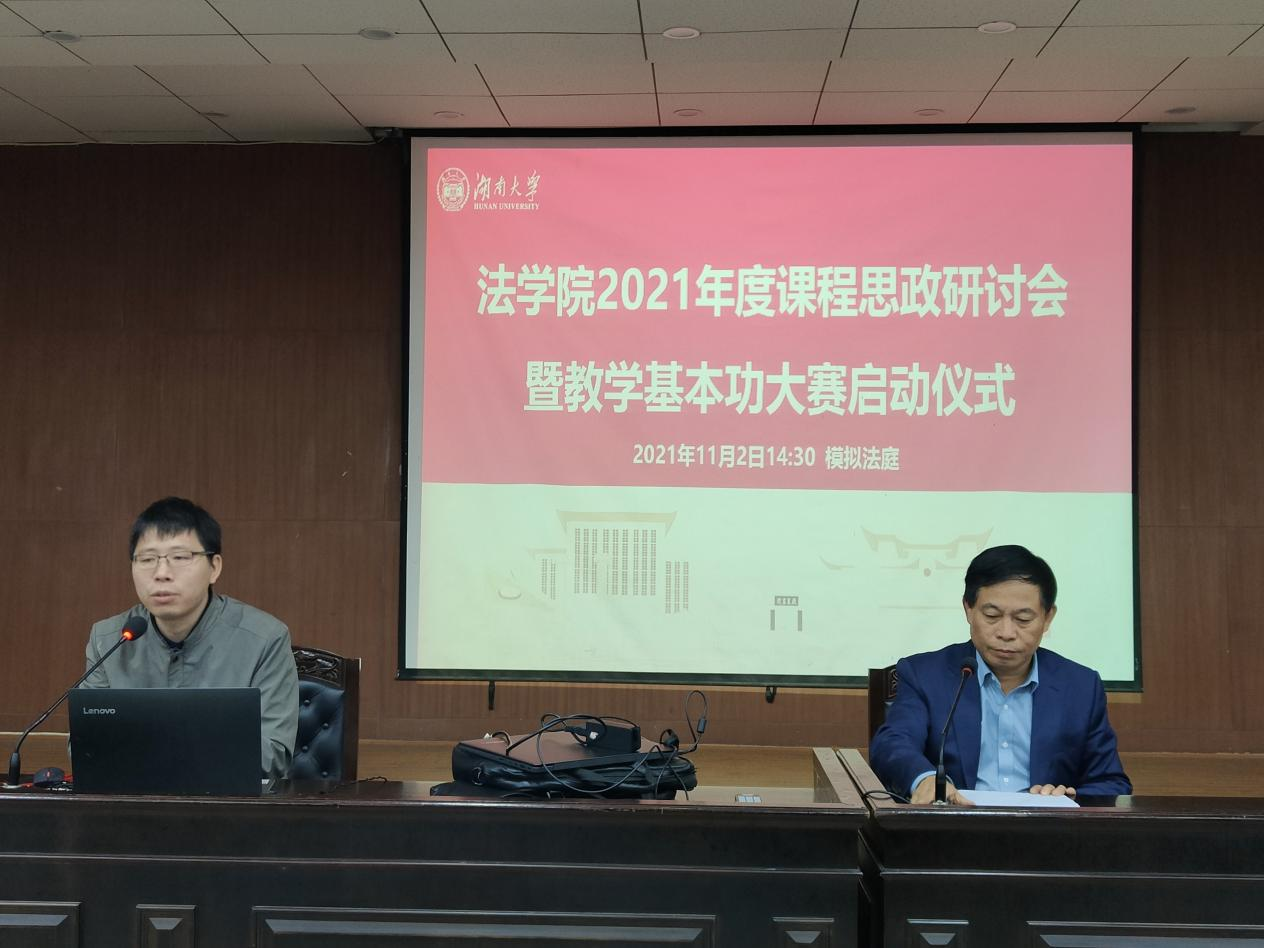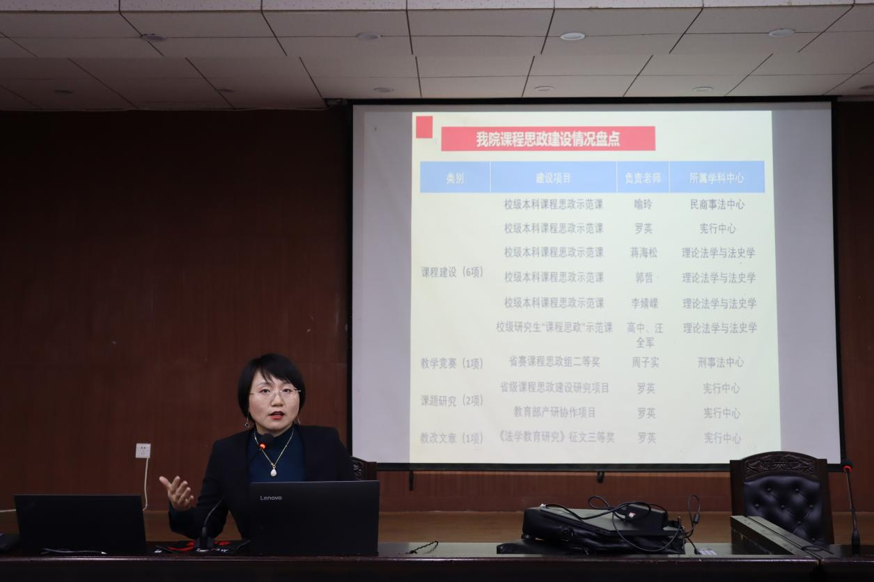 蒋海松副院长传达了《湖南大学法学类专业课程思政指南》主要内容,汇报了教学基本功大赛的组织情况。他介绍了有关课程思政的总体政策及全国各大法棋牌游戏官网