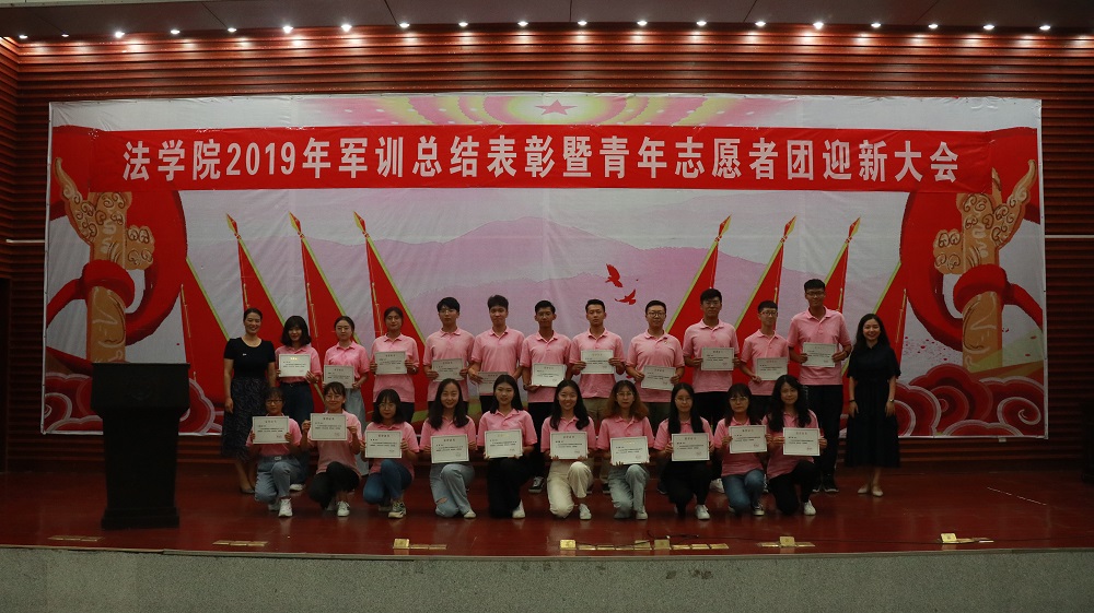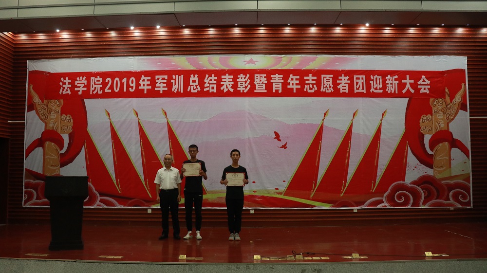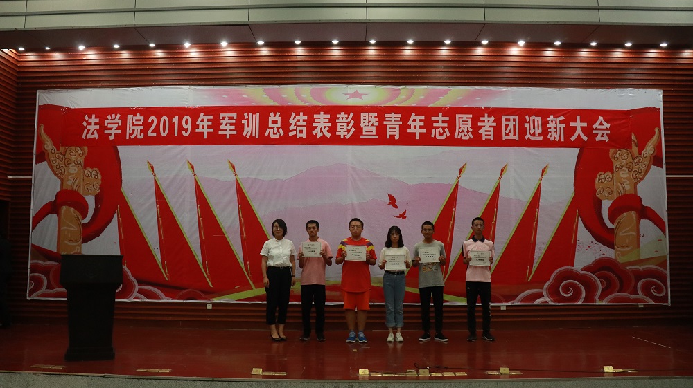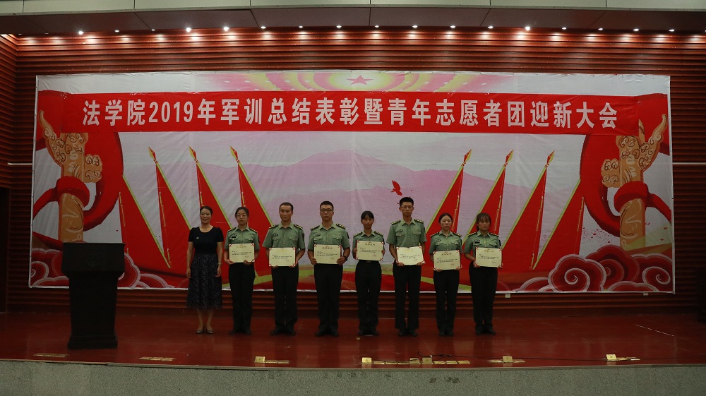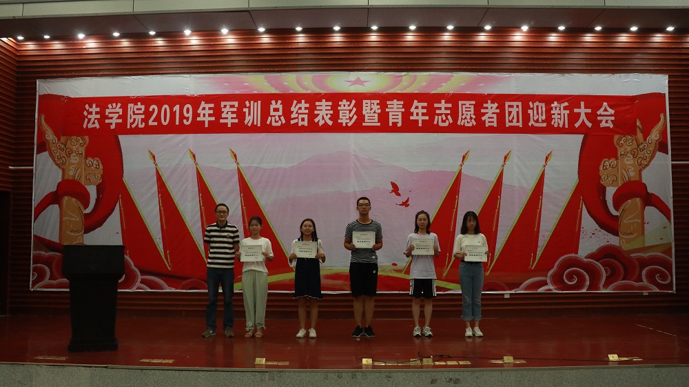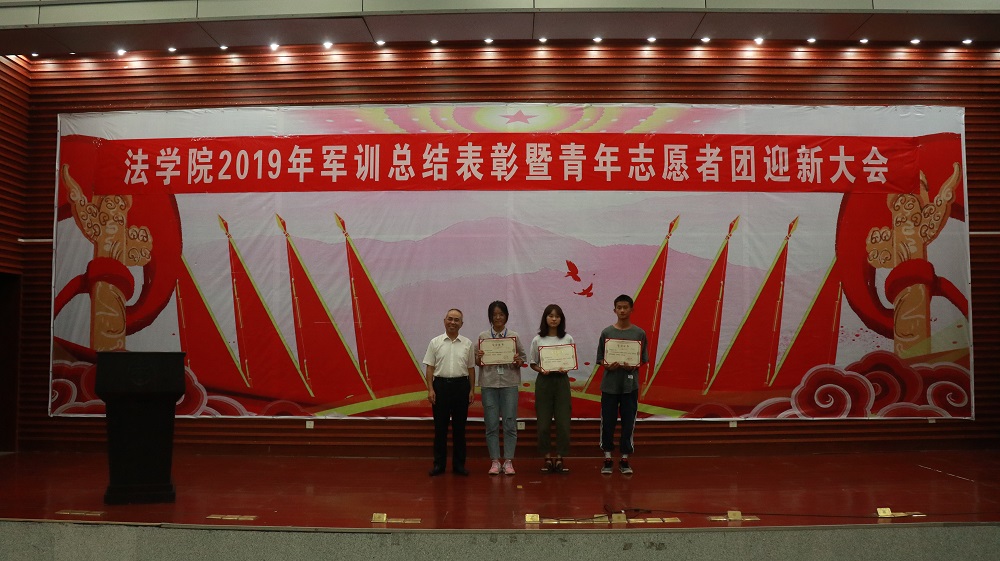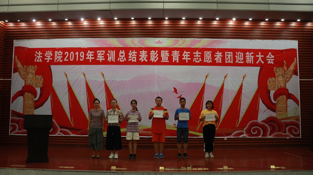 授予2019级法学三班、法学四班军训队列优胜班级荣誉称号,授予2019级法学一班、法学二班、法学五班军训作风纪律先进班级荣誉称号,授予天马园区三区九栋433寝室等十个寝室军训内务评比优胜寝室荣誉称号,授予许昕、张思等十五人为军训先进个人,同时嘉奖全程参与2019级新生军训工作的迎新团队成员和全体三营教官。