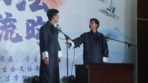 舞台剧《大学老师茶话会》展现出大学辅导员在同学们学习、生活、人际交往等方面的无私奉献,法学1901班同学用生动活泼的表演形式表达对辅导员老师的理解与尊敬,号召同学们在大学期间努力学习、积极进取。赵行、刘睿涵同学带来的乐器合奏《天空之城》让观众徜徉在美妙的音乐世界,感受跳动的音符带来的愉悦与静谧,收获了现场观众持久不息的热烈掌声。法学1903班同学献上歌曲《年少有你》,致敬洋溢激情与甜蜜的青春韶华。法学1904班同学带来的舞台剧《对龙谈法》体现对环境保护与经济发展之间关系的思考,并且融入环境保护法等法学知识,表现法棋牌游戏官网