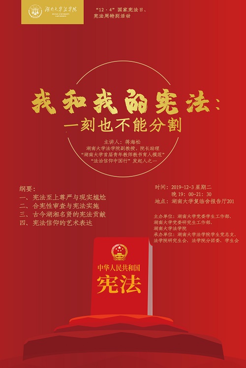 2019年12月3日晚,为迎接第六个国家宪法日,“我和我的宪法,一刻也不能分割”主题讲座在棋牌游戏官网