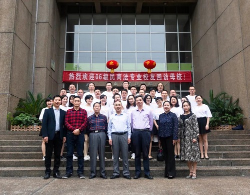2019年10月,06 级民商法硕士班、经济法 951 班、国际经济法 951 班全体校友在秩年纪念返校之际,捐赠支持母院法学一流学科发展。