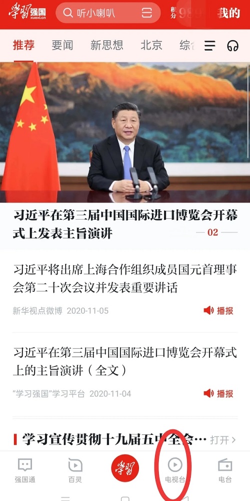进入“学习强国”主界面,选择右下角 “电视台”,然后选择“看法治”,再选“法律课堂”栏目即可