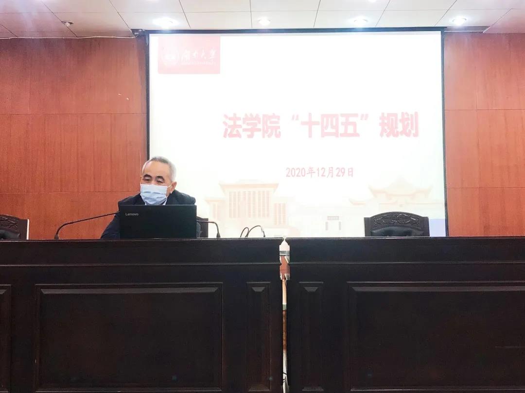 实际,对我院法学教育的外部需求和内部动因进行了分析,并从人才培养、教师队伍建设、科学研究、学科建设、社会服务、国际交流与合作、党建与思想政治工作等方面对“十四五”规划进行详细解读。他明确了我院在“十四五”规划期间的主要目标,强调要抓实抓细并落实每一项关键性指标,并针对上述方面提出具体改革要求和工作部署,希望全体师生群策群力,多提想法和建议,凝聚共识。