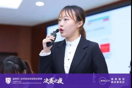 辩论队队长邓冰莹,国际华语辩论邀请赛亚军、对外经贸大学辩论队执行教练、中国人民大学资深辩手徐天一莅临决赛现场担任评委。