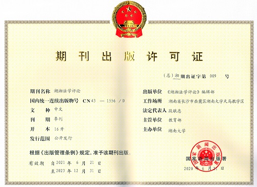 院长屈茂辉教授担任《湖湘法学评论》主编。刊物为季刊,季末出刊。2021年下半年将首次出刊。