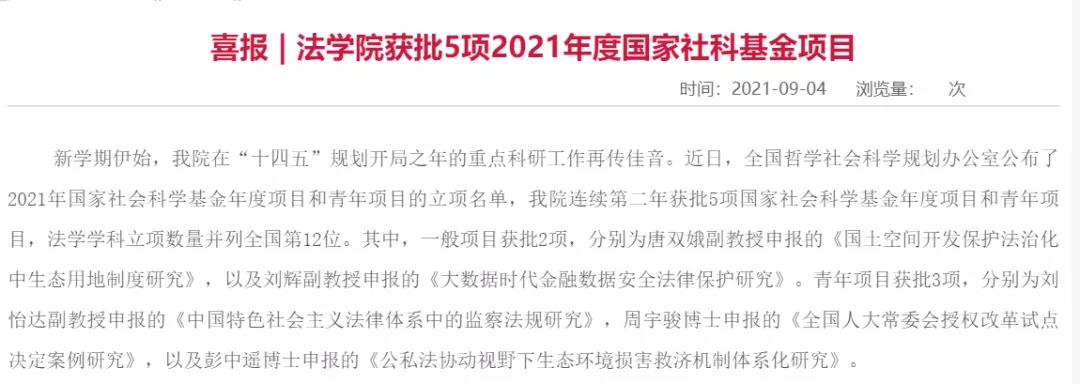 教育部发布《教育部办公厅关于公布首批新文科研究与改革实践项目的通知》(教高厅函〔2021〕31号),屈茂辉教授领衔申报的“以信息技术与法律融合为抓手的‘新法科’改革与实践 ”项目获批国家级新文科项目立项。