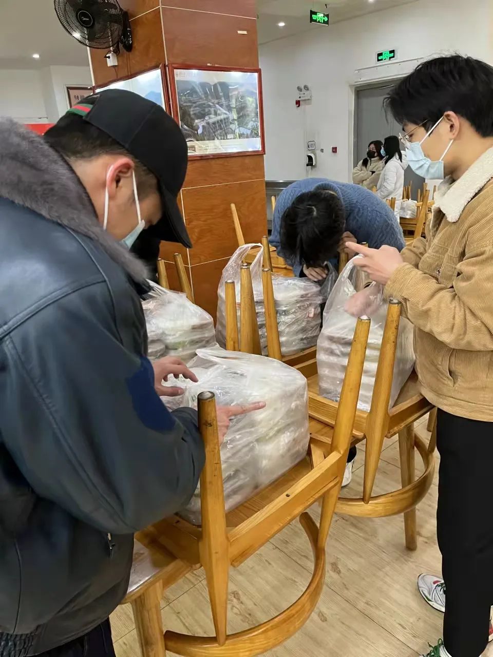 志愿者在通知和配餐