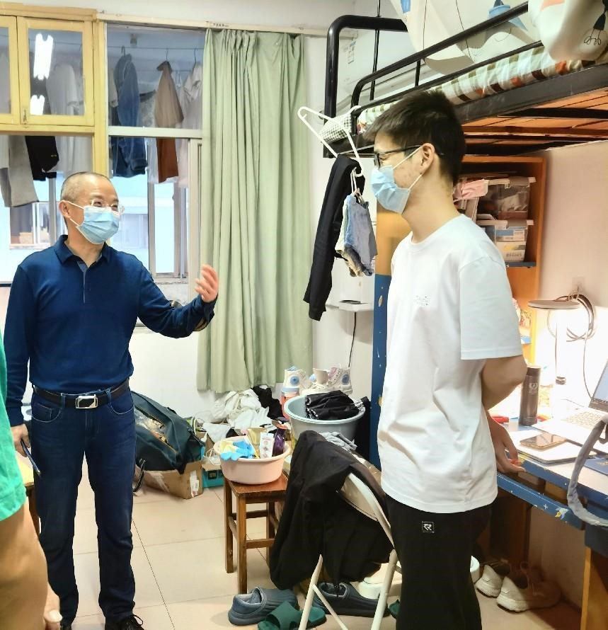 走访慰问过程中,老师们在宿舍内与同学们进行亲切交流,悉心询问同学们在封闭管理期间的身体状况及学习、生活保障情况,宽慰同学们的心理,叮嘱同学们做好自我防护。走访的老师们特别提醒同学们,无论是居寝隔离期间还是待宿舍园区解控以后,寝室都要勤开窗、常通风、保持寝室整洁卫生。法律人讲条理、讲逻辑、讲层次,整洁有序的环境有助于愉悦心情、提高学习效率。