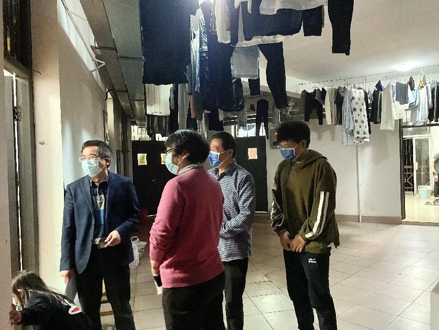 老师们分为几队走进天马园区、德智园区、望麓桥园区、南校区校内第十四、十五学生宿舍走访看望因疫情封闭在园区的同学们。参加走访的老师有:棋牌游戏官网