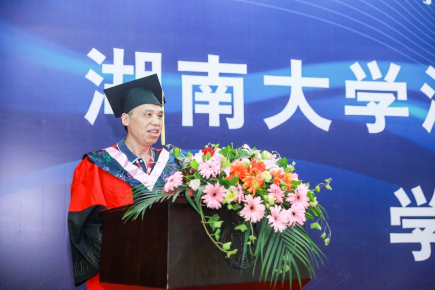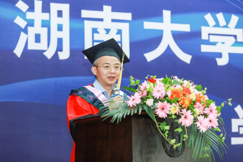 向毕业生表示最热烈的祝贺并致以最美好的祝愿,向毕业生们分享了自己对于法律正义的思考和对幸福的感悟。他提出:人的一生,就是一个挖掘、寻觅、认知自己的过程。无论际遇如何,我们都应尽可能,我们必须尽力去做一个善良、有底线、有温度的湖大法律人!人生不易!事虽难,路虽长,但是只要我们我们砥砺前行,就没有比脚更长的路,就没有比人更高的山峰。勉励同学们无论艰难困苦,我们都必须永不言弃、坚忍不拔地去为自己的生命注入意义,一步步地走向我们的终点。