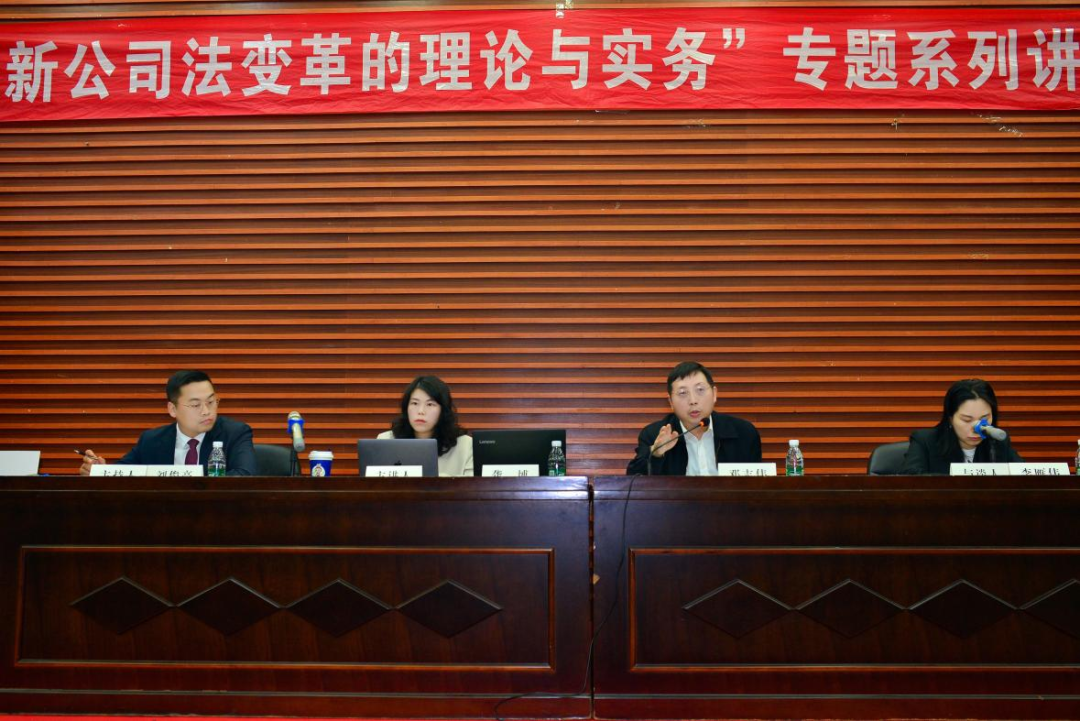 副教授龚博、省高院民二庭副庭长邓志伟和与谈嘉宾市律协公司法专业委员会副主任李雁伟围绕讲座主题解读了公司组织机构有关问题,对公司法修改过程中的愿景进行详细论述。