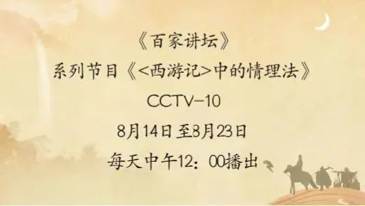 2024年8月14日中午,知名文化品牌栏目、中央广播电视总台科教频道CCTV-10《百家讲坛》开播《〈西游记〉中的情理法》(第一部)。专题节目特邀棋牌游戏官网