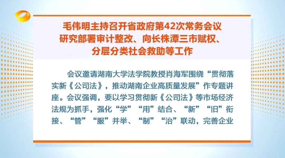 会议原则通过《关于赋予长沙市、株洲市、湘潭市部分省级经济社会管理权限的通知》,会议指出要坚持需求导向、精准赋权,分别赋予长株潭三市先进制造、市场准入、工程建设等重点领域的省级经济社会管理权限,提速数字赋能、抓好承接落地、加强监督管理,加快赋权事项进驻“湘易办”超级服务端等平台,推动线上线下融合办理、一网通办,为长株潭一体化高质量发展松绑、减负、赋能,进一步提升长株潭三市的内生发展动力和龙头带动能力。