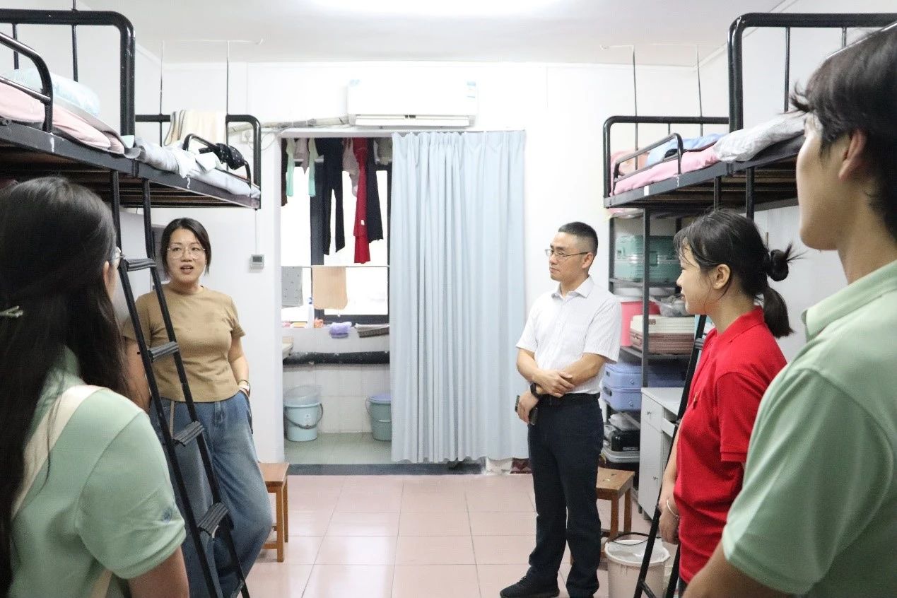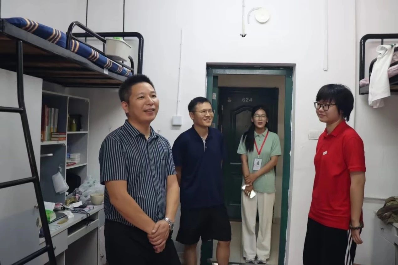 党委书记李劲松、院长黎四奇的组织下,院领导及新生班主任深入园区宿舍开展走访看望工作,以增强新生归属感,引导新生以积极、饱满的状态迎接新的校园生活。