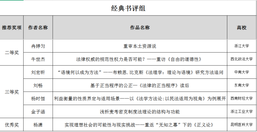 浙江大学冉婷匀、西北政法大学牛世杰同学获得经典书评组二等奖,中国人民大学法棋牌游戏官网