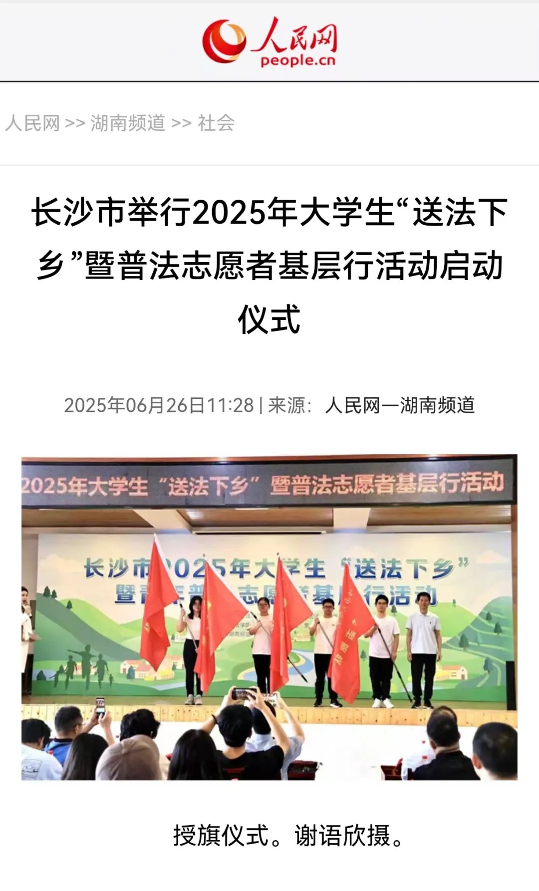 2025年6月25日,长沙市2025年大学生“送法下乡”暨普法志愿者基层行活动顺利开展。本次活动是由长沙市守法普法工作办公室、长沙市司法局、开福区司法局主办,由棋牌游戏官网