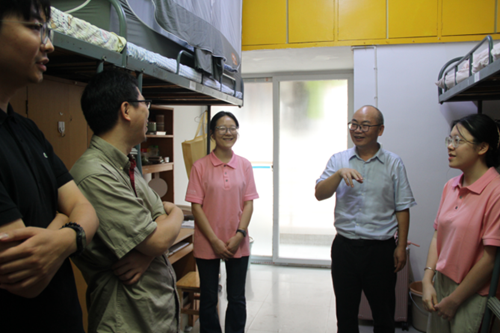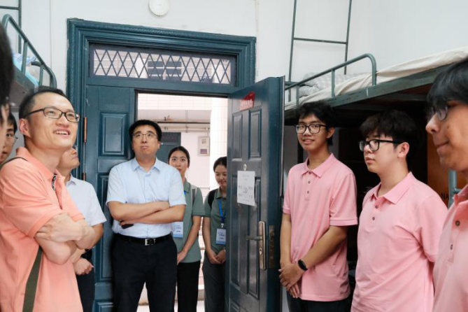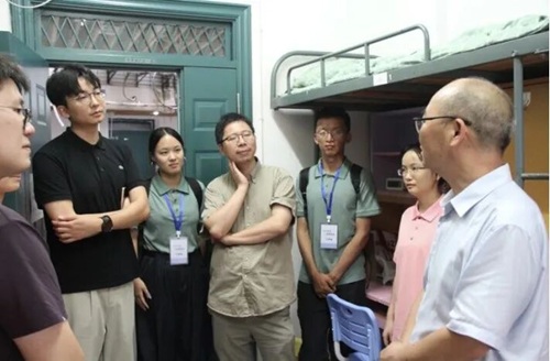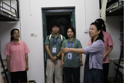 园生活,营造安全、和谐、温馨的寝室氛围,9月10日傍晚,党委书记李劲松、院党委副书记兼纪委书记胡琼、副院长蒋海松、副院长王文胜、院长助理展鹏贺,2025级班主任林慰曾、张晓勇、袁崇霖、郑德群、林婧,以及2025级本科辅导员张丹深入新生寝室,开展查寝慰问工作。