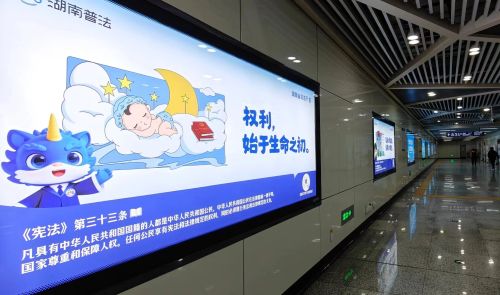 长沙地铁4号线“12·4”国家宪法日主题专列里,车门处张贴了宪法条文科普,用简洁直观的方式搭建起宪法与日常生活的联系,引导乘客主动关注宪法。