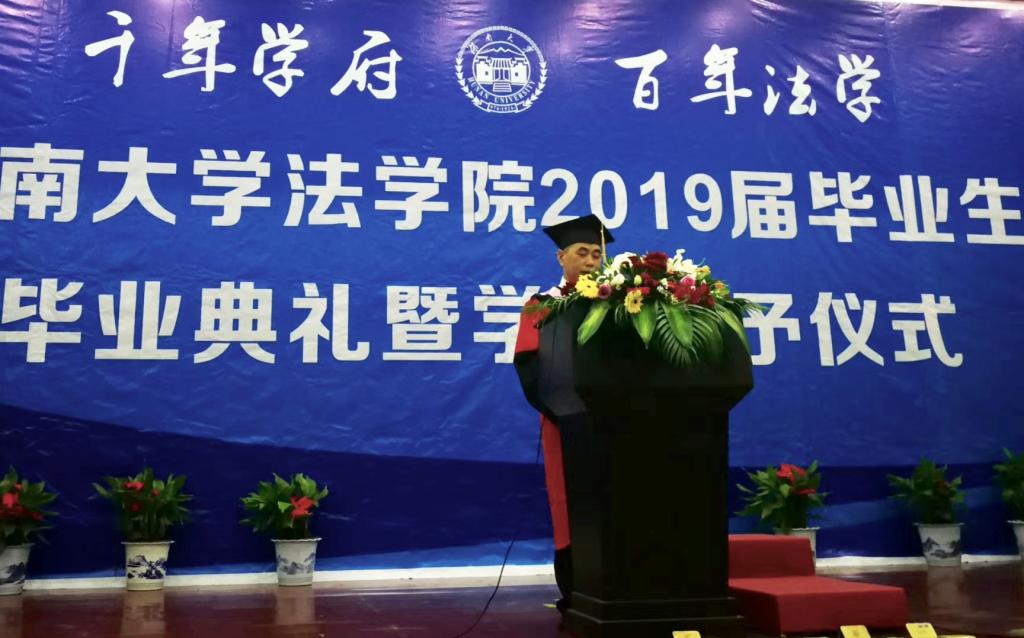 下一环节是院长致辞,屈老师以“法治日进,盛德日新”为主题,为毕业生送别。屈老师以“变革”为主线,从中国的时代变革谈到法治变革,从湖大法棋牌游戏官网