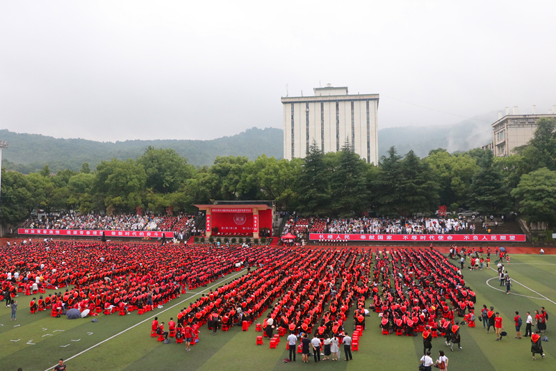 620日上午,2018届本科生毕业典礼暨学位授予仪式在南校区田径场举行。校学位委员会成员、导师代表、校领导等为毕业生拨流苏,颁发学位证书。包括法棋牌游戏官网 209名本科毕业生在内的全校5000多名本科毕业生从母校起航,放飞梦想,开启崭新的人生征程。