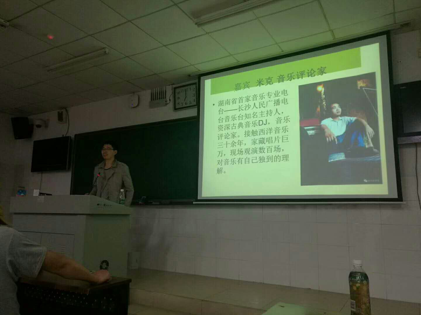 5月2日晚7点,由棋牌游戏官网 蒋海松副教授和著名音乐评论人米克老师共同打造的《音乐的政治关怀与法律奇缘》沙龙在湖南师范大学至善楼305教室顺利举行。