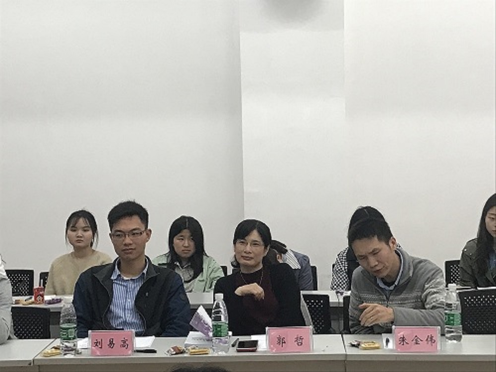 郭哲副教授,湖南省长沙市芙蓉区法院法官刘易高和湖南龙冠律师事务所律师朱金伟担任评议嘉宾。2017级法学一班全体同学和部分研究生参加了本次读书会。