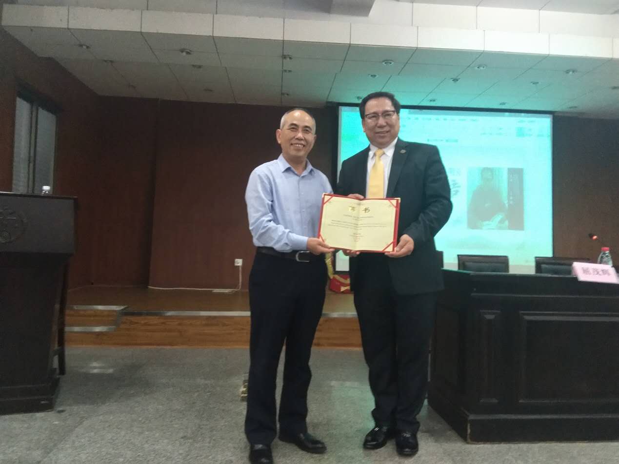 授予庄先生湖南大学聘书和校徽,聘任庄先生为棋牌游戏官网