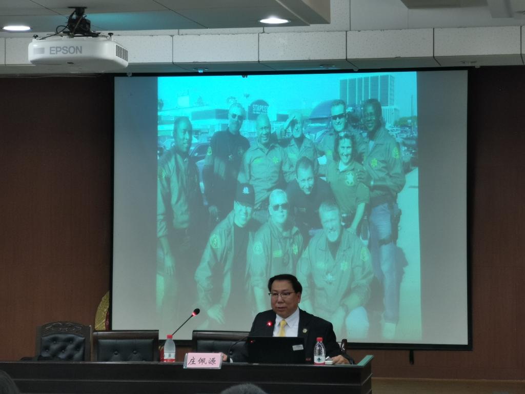 ,在模拟法庭举行了题为“昨天今天和明天:一位美国华人警察的人生感悟”的讲座。