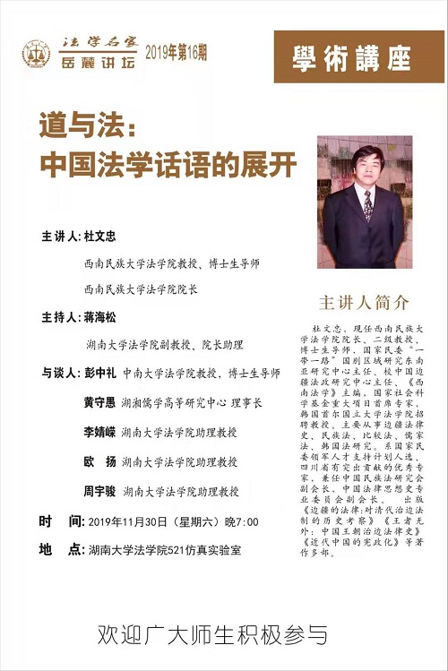 主讲人:杜文忠,西南民族大学法棋牌游戏官网