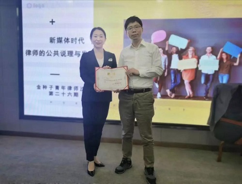 培训结束,湖南金州律师事务所高级合伙人甘元春律师表示,作为律师,保持理性,把握焦点,注重用事实、逻辑发声对于推动案件发展,还原案件事实,实现公平正义是十分必要的。湖南金州律师事务所高级合伙人,培训部负责人韩颖律师为蒋海松教授颁发湖南金州律师事务所金种子青年律师沙龙特聘讲师证书。至此,培训正式结束。