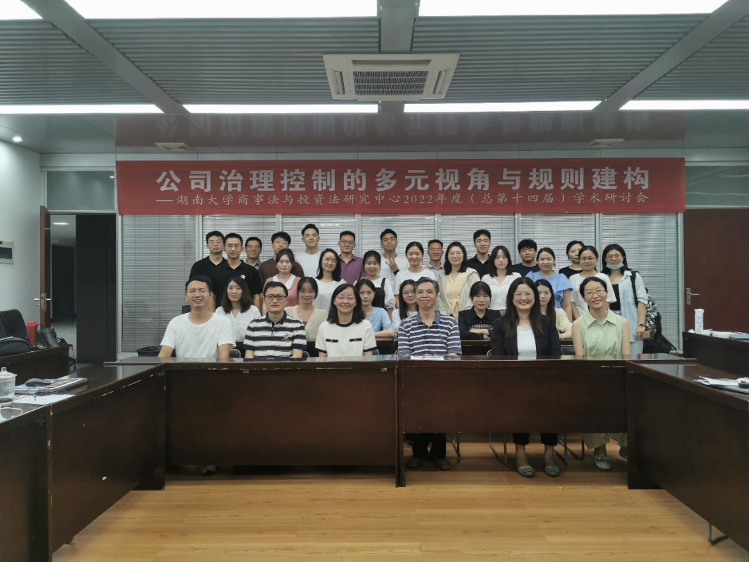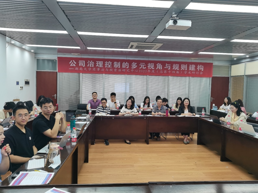 404会议室组织其指导的研究生举行了一年一度的专题读书会暨湖南大学商事法与投资法研究中心第十四届学术研讨会,本次会议的主题为“公司治理控制的多元视角与规则建构”。会议以线下(现场)和线上(腾讯会议)的形式同步进行,参加会议的有肖海军老师门下的全体在校博士生、研究生和部分近期毕业的博士生、研究生,此外,陈运来老师、肖和保老师、宋晓庆老师所指导的部分商法方向研究生也被邀与会。研讨会特别邀请了喻玲副院长、张晓勇老师、宋晓庆老师指导并担任嘉宾点评。本次主题研讨由2020级、2021级两届在校研究生以老新结合、以老带新、共同负责、相互合作的形式完成,其中2020级研究生负责学术指导、经验传授和过程督促,2021级研究生承担研讨主题方向下的选题确定、资料搜集、案例整理、文献综述、代表发言。