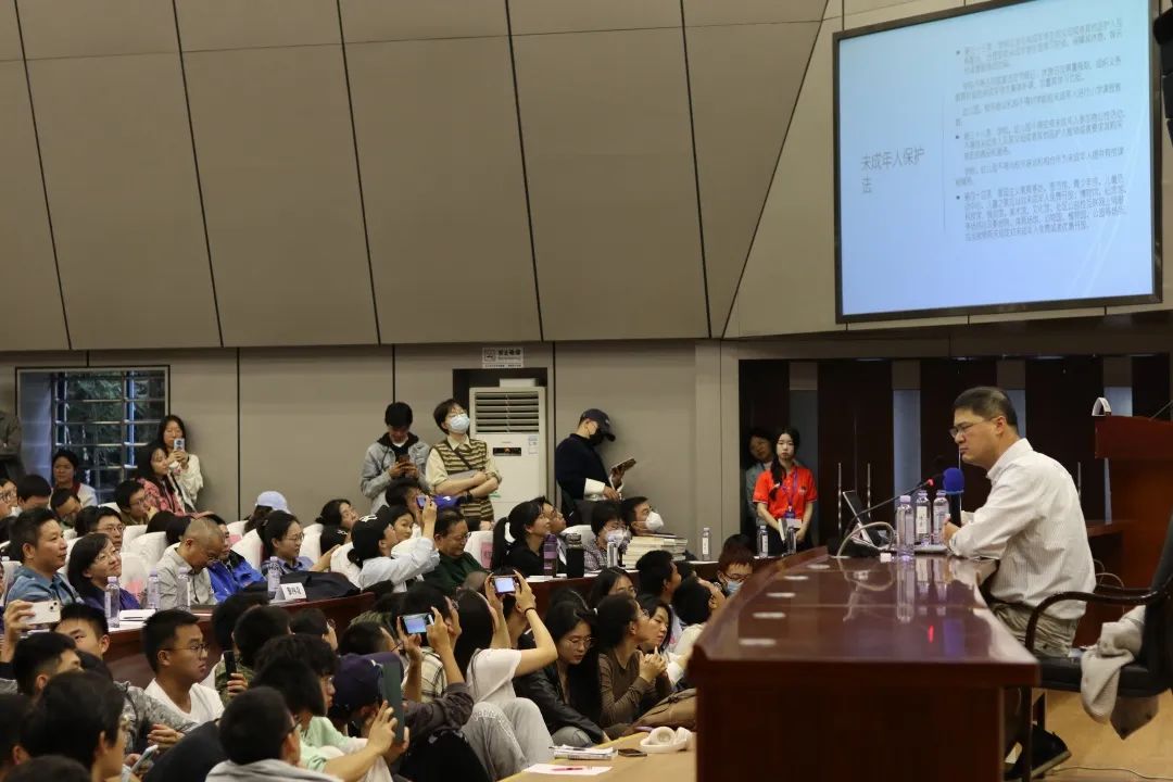 院长黎四奇教授主持,几百名湖南大学师生和社会各界法律爱好者到场聆听。