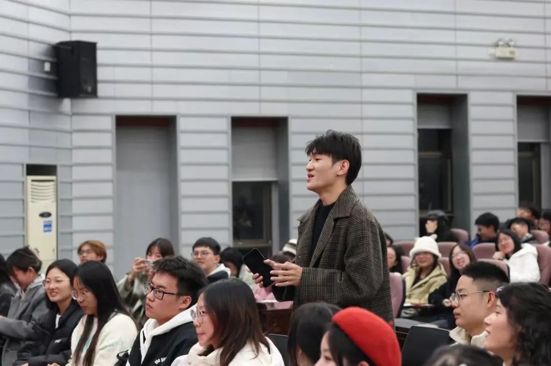 随后,进入有奖互动环节,由在场学生向车润海老师、岳业鹏老师提问,二位老师对此作出解答。在场学生十分热情,争相举手,现场氛围高涨。老师和同学们对于非法学跨考法律的现状及困境、法律人面对与自己想法不同的案件判决该如何应对、如何看待死刑废除等问题进行深入探讨,并鼓励大家坚持自己所热爱的专业,在现实中也要做一位有温度的理想主义者。