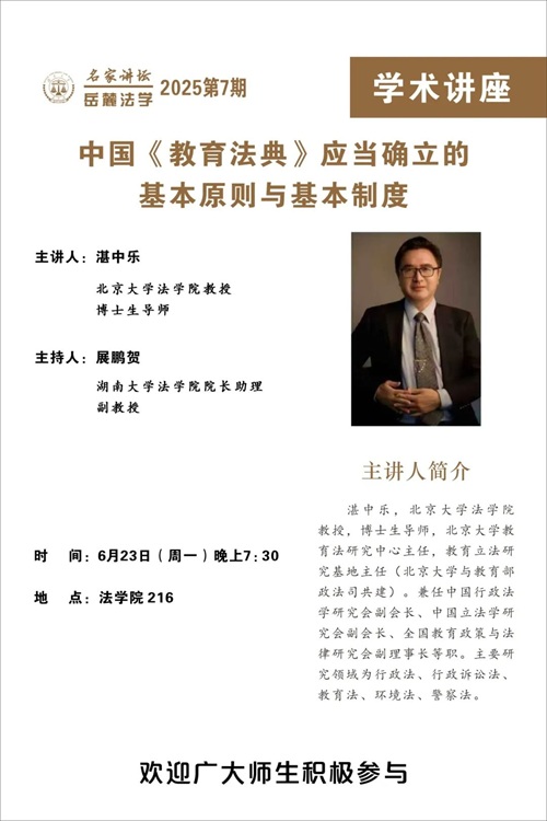 “岳麓法学名家讲坛”第7期,为法棋牌游戏官网