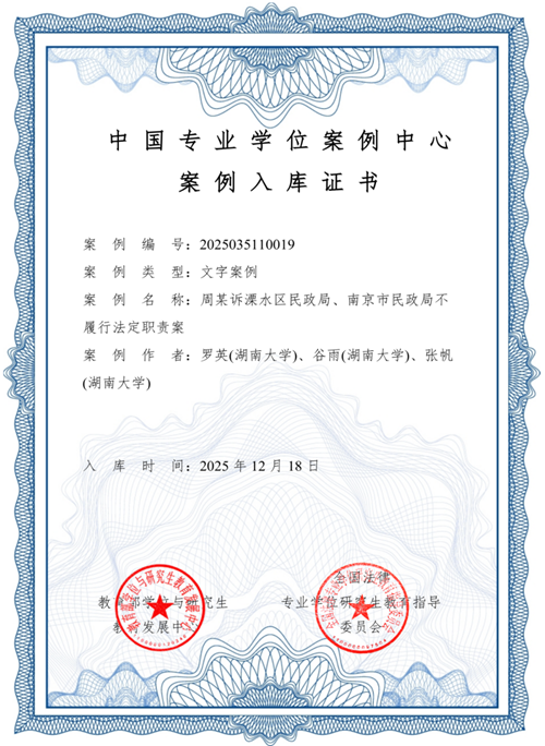 近日,教育部学位与研究生教育发展中心公布了中国专业学位案例中心2025年度入库案例名单,我院罗英教授团队撰写的案例入选第五批法律硕士专业学位文字教学案例库。
