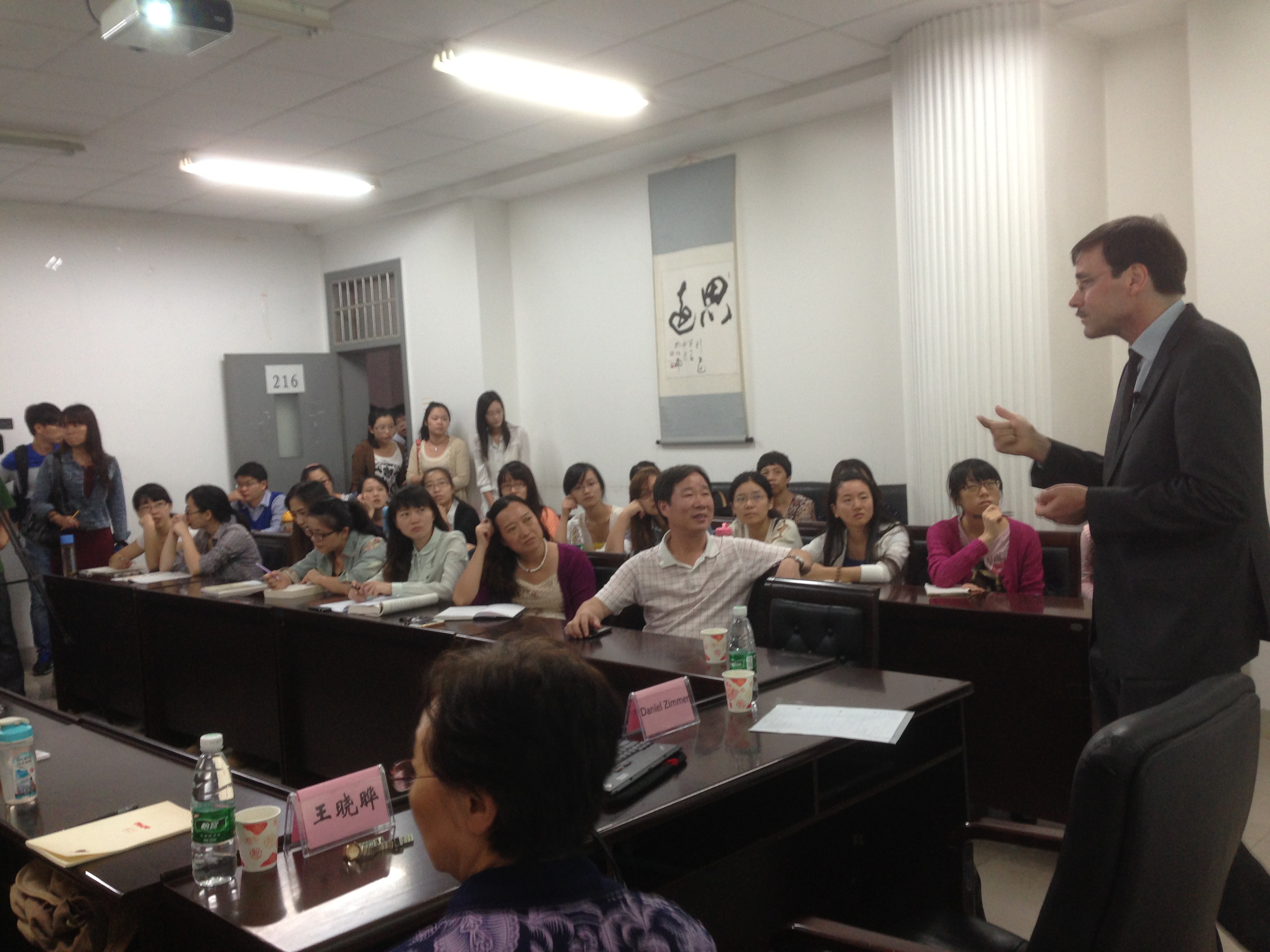王晓晔教授主持,在历时三个小时的讲座中,Zimmer教授主要介绍了德国竞争法的发展背景以及在滥用市场支配地位方面的研究成果,指出德国在2005年对其《反限制竞争法》进行了至今为止最重大的修订,放弃了很多具有德国特色的制度,甚至不惜牺牲本国独特的竞争法律文化,而成员国竞争法欧洲化过程对于其他国家反垄断立法借鉴也提供了可资参考的宝贵经验。