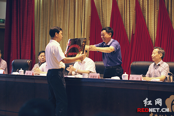 中国廉政法制研究会领导为湖南研究中心颁发牌匾。