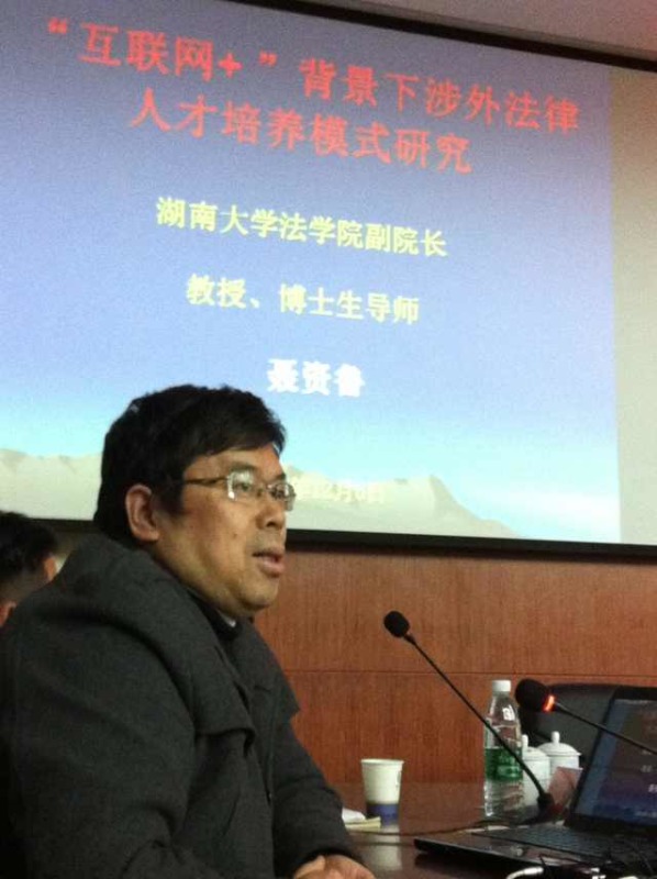 2015年12月6日,湖南省法学会法学教育研究会2015年年会暨“互联网+背景下法学教育改革高峰论坛”在长沙棋牌游戏官网 举行。棋牌游戏官网 刘定华会长、屈茂辉院长、聂资鲁副院长、肖艳辉副教授、郭哲副教授、王文胜助理教授出席了会议。聂资鲁教授作了“互联网+背景下涉外法律人才培养模式研究”的主题发言。王文胜老师的论文“当前我国全日制法律硕士研究生教育存在的问题及其应对”获二等奖;郭哲副教授、冯雁同学的论文“论法学教育中法律思维的培养”获三等奖。