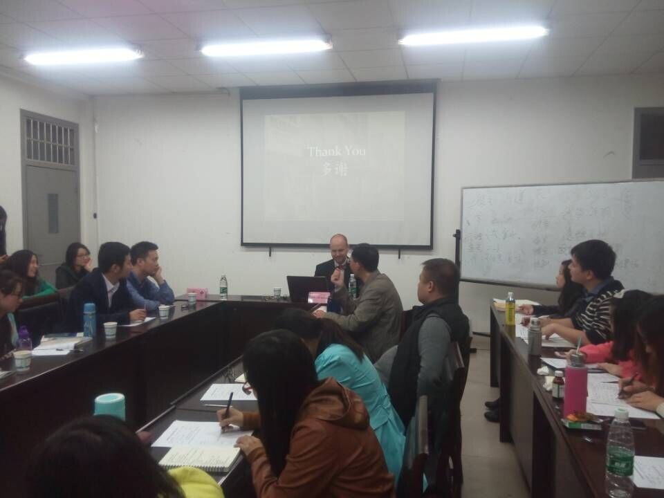 最后高中副教授对讲座进行了简要的点评,在座的同学向John.W.Givens博士积极提问,大体包括对中国的维权律师的实践的看法;如何在维护人权的实践中保持和平的态度,既能让普通大众接受,又能不触及政府的底线;外国维权律师生存困难,他们是用何种手段支持自己的维权律师事业;维权律师是不是只关注国内维权案件,是否有国际化趋势,当处理外国人权案件时与本国利益抵触时怎么办等等;John.W.Givens博士对这些问题一一进行详细解答,同时提出了自己的见解,现场气氛相当热烈。