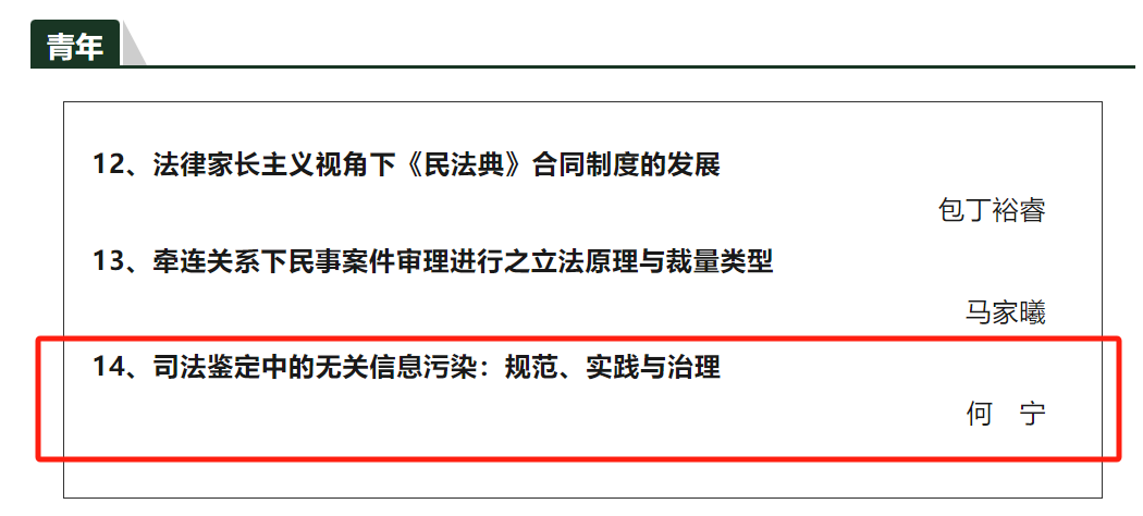 近期,湖南大学何宁助理教授在CLSCI《中外法学》2024(4)上发表论文《司法鉴定中的无关信息污染:规范、实践与治理》。