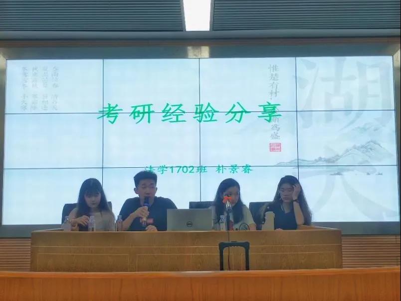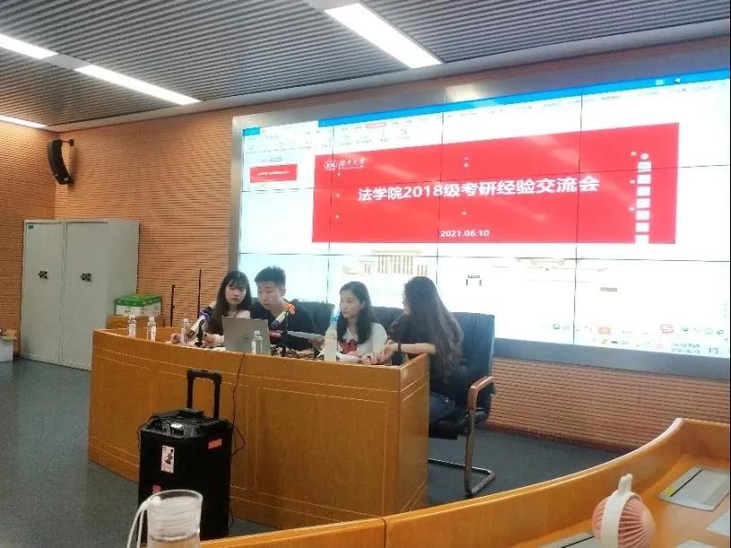 2021年6月10日晚,法棋牌游戏官网 2018级年级会主办的考研经验交流会在法棋牌游戏官网 521教室召开。本次交流会邀请了法棋牌游戏官网 2017级考取复旦大学法律硕士的陈佳同学、考取吉林大学法律硕士的朴景睿同学考取湖南大学宪法学与行政法学硕士的白帆同学和考取中国政法大学刑事司法棋牌游戏官网 刑法学硕士的马雨鑫同学作为主讲嘉宾,分享自己的备考、应试经验。辅导员谷雨老师参加此次交流会。