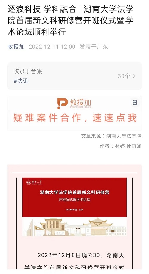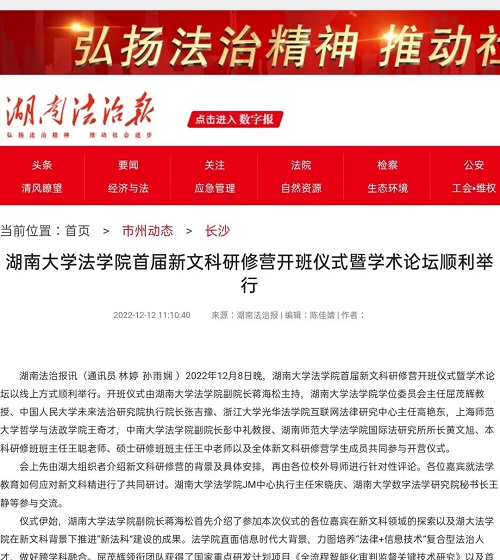 首届新文科研修营开班》,《法治日报·法治周末》推出报道《法学教育如何应对新文科》,知名法学公众号“法学学术前沿”推出报道《学界 | 全国法学界第1个新文科研修营 棋牌游戏官网