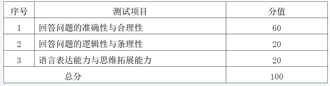 主要考核考生对本学科专业知识和应用技能的掌握程度,共100 分。专业测试实行题库随机抽题,每人限抽三题,可选择其中二题作答