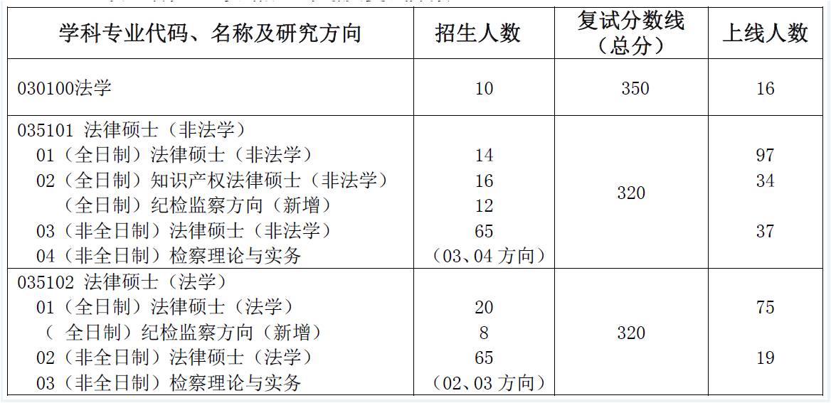 3. 棋牌游戏官网 新增纪检监察方向,该专业方向不单独录取。报考全日制法律硕士(含法本与非法本,不含知识产权方向)进入复试的考生,自愿选择是否同意录取该专业方向,棋牌游戏官网 根据总成绩(初试及复试总成绩之和)从高分到低分确定拟录取名单。