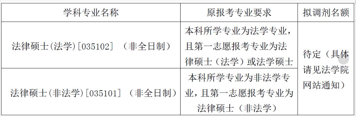 1.所有全日制专业不接受调剂非全日制法律硕士(法学)、非全日制法律硕士(非法学)根据招生指标完成情况决定是否接受调剂,并按“定向就业”类别录取。