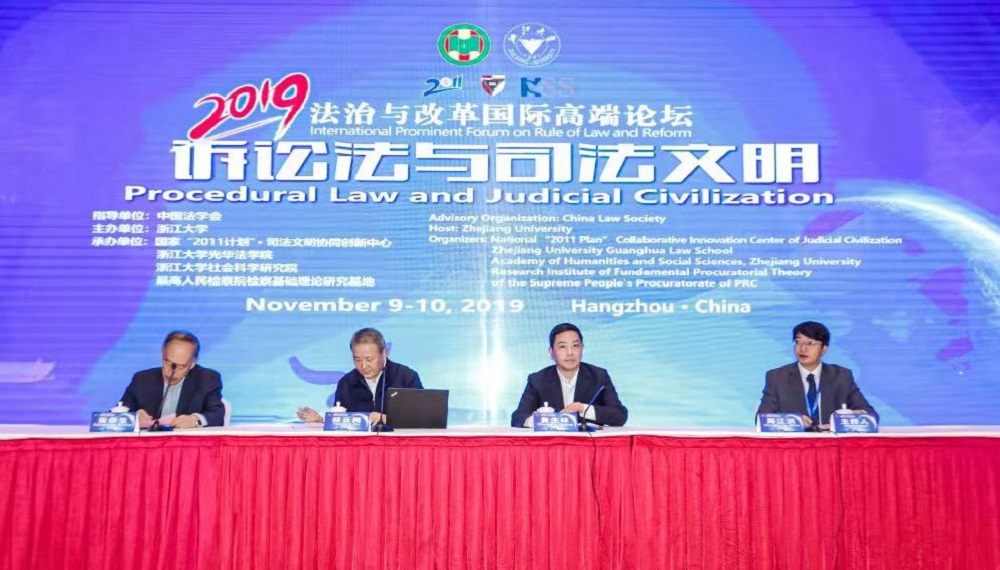 2019年11月9日上午,为期两天的“2019年法治与改革国际高端论坛”在杭州举行。本次论坛的主题为“诉讼法与司法文明”,由中国法学会指导,浙江大学主办,国家“2011计划”·司法文明协同创新中心、浙江大学光华法棋牌游戏官网 、浙江大学社会科学研究院、最高人民检察院检察基础理论研究基地共同承办。百余名国内外一流学者和实务界杰出代表云集杭州,就诉讼法与司法文明、诉讼法律制度建设40年、十八大以来的司法改革、司法文明比较研究等多个方面进行深入探讨和广泛交流。