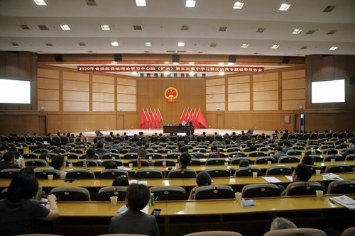 湖南高院全体在家院领导、厅级干部、机关全体干警在主会场参加集中学习。全省各中、基层法院以及西藏自治区山南市两级法院全体干警通过视频参加学习。结对的西藏山南法院系统工作人员在线收看了讲座
