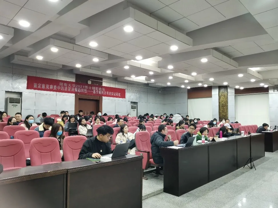 2021年12月23日晚,“2021博士创新论坛”于棋牌游戏官网 模拟法庭举行。本次活动由棋牌游戏官网研究生工作部主办,法棋牌游戏官网 承办。棋牌游戏官网 王中老师作了主题为“鉴定意见审查中的法官决策趋利性”的精彩演讲,博士生吴俊廷、易凡作为嘉宾出席。