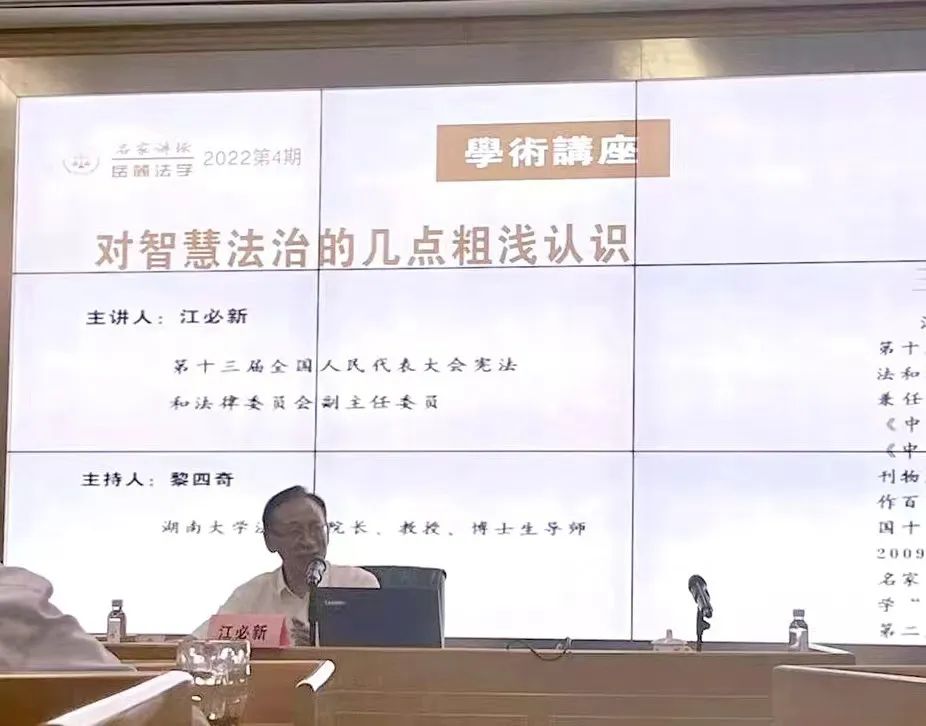 2022年9月13日下午,著名法学家、第十三届全国人民代表大会宪法和法律委员会副主任委员、中国法学会副会长江必新教授在棋牌游戏官网