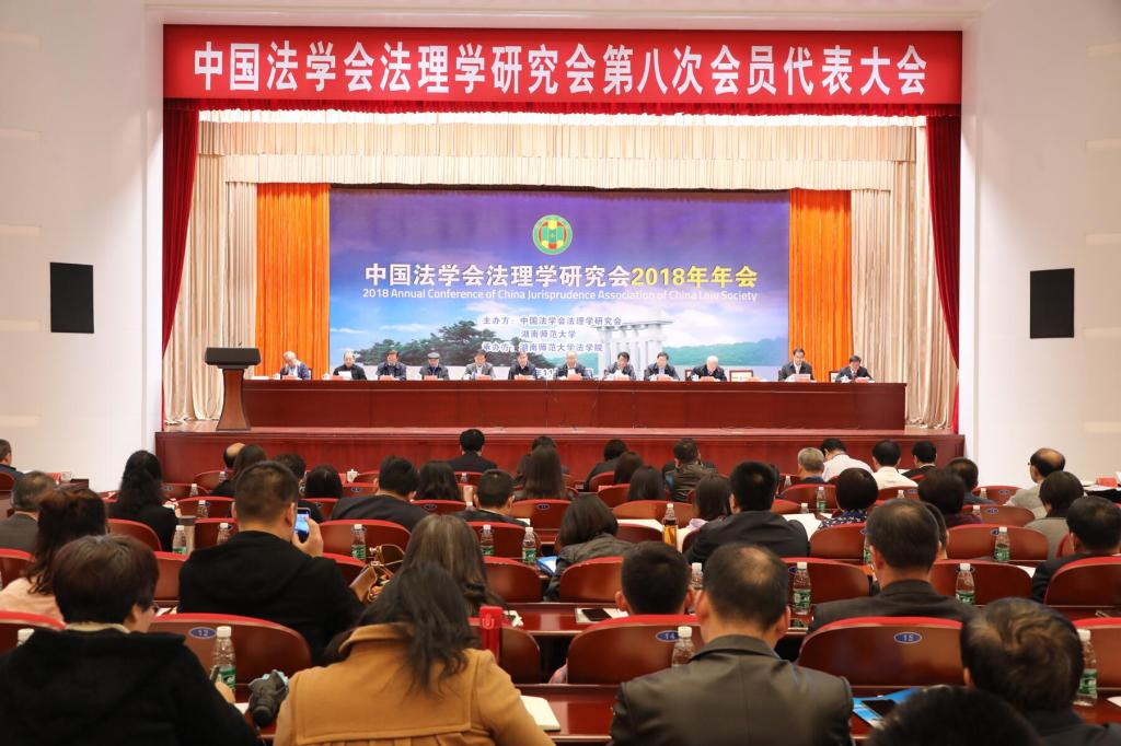20181110日上午,中国法学会法理学研究会第八届会员代表大会暨2018年年会在湖南省长沙市隆重举行。大会由中国法学会法理学研究会、湖南师范大学举主办,湖南师范大学法棋牌游戏官网 承办,主题为“新时代的法理学”。 中国法学会会长王乐泉、湖南省委常委、政法委书记黄关春、湖南省政协副主席胡旭晟、中国法学会党组成员、副会长、学术委员会主任张文显等领导出席,来自多所高校以及科研机构的500多名法理学专家学者和实务工作者参会。